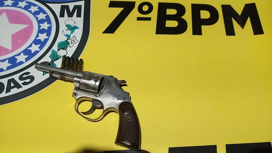Com base nas características informadas, os policiais realizaram buscas na área e conseguiram localizar o suspeito. Durante a abordagem, foi feita revista pessoal e a arma de fogo foi encontrada em posse do indivíduo.